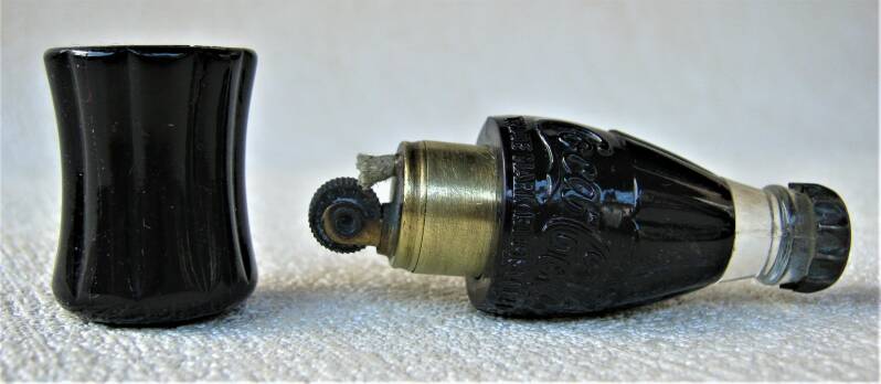 "Emersons" Permanent Match. door de stick langs de linker zijkant van de aansteker te strijken,ontstaat er een vonk die het katoentje in de stick zal laten branden,de aansteker is gevuld met katoen en benzine.
